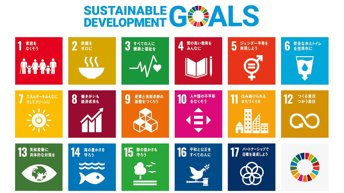 当社は国連が提唱する「持続可能な開発目標(SDGs)」に賛同し、SDGsの達成に向けた取組みを行っていく事を宣言します。